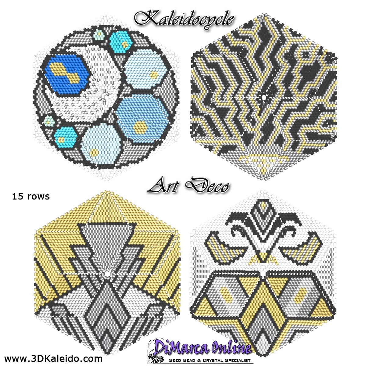 This beading pattern provides colour diagrams and word charts to create the ART DECO 3D Kaleidocycle.