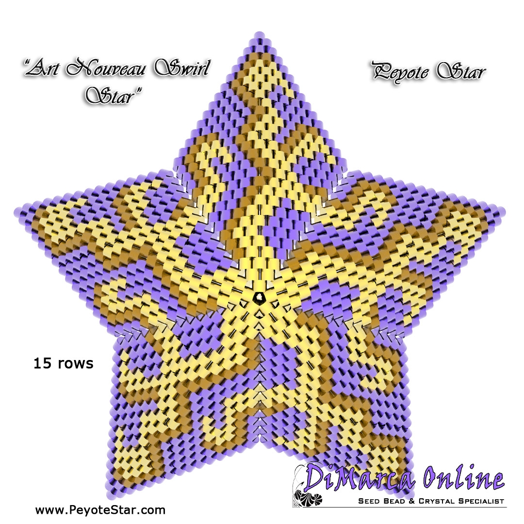 This beading pattern provides a colour diagram and word chart to create the ART NOUVEAU SWIRL 3D Peyote Star.
