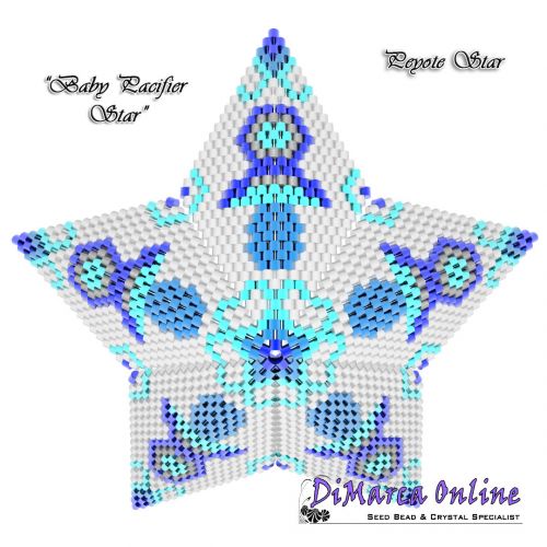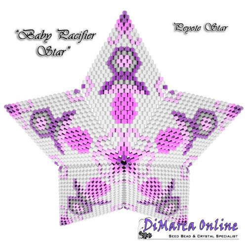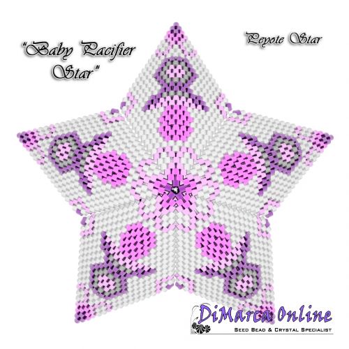 This beading pattern provides a colour diagram and text to create the Baby Pacifier 3D Peyote Star.