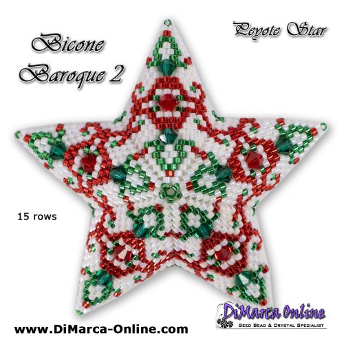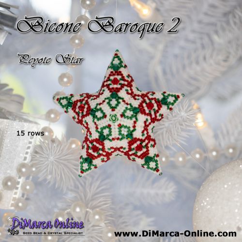 This beading pattern provides a colour diagram and word chart to create the BICONE BAROQUE 2 Peyote Star.