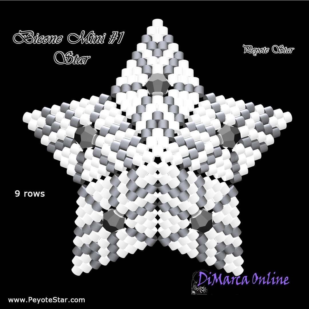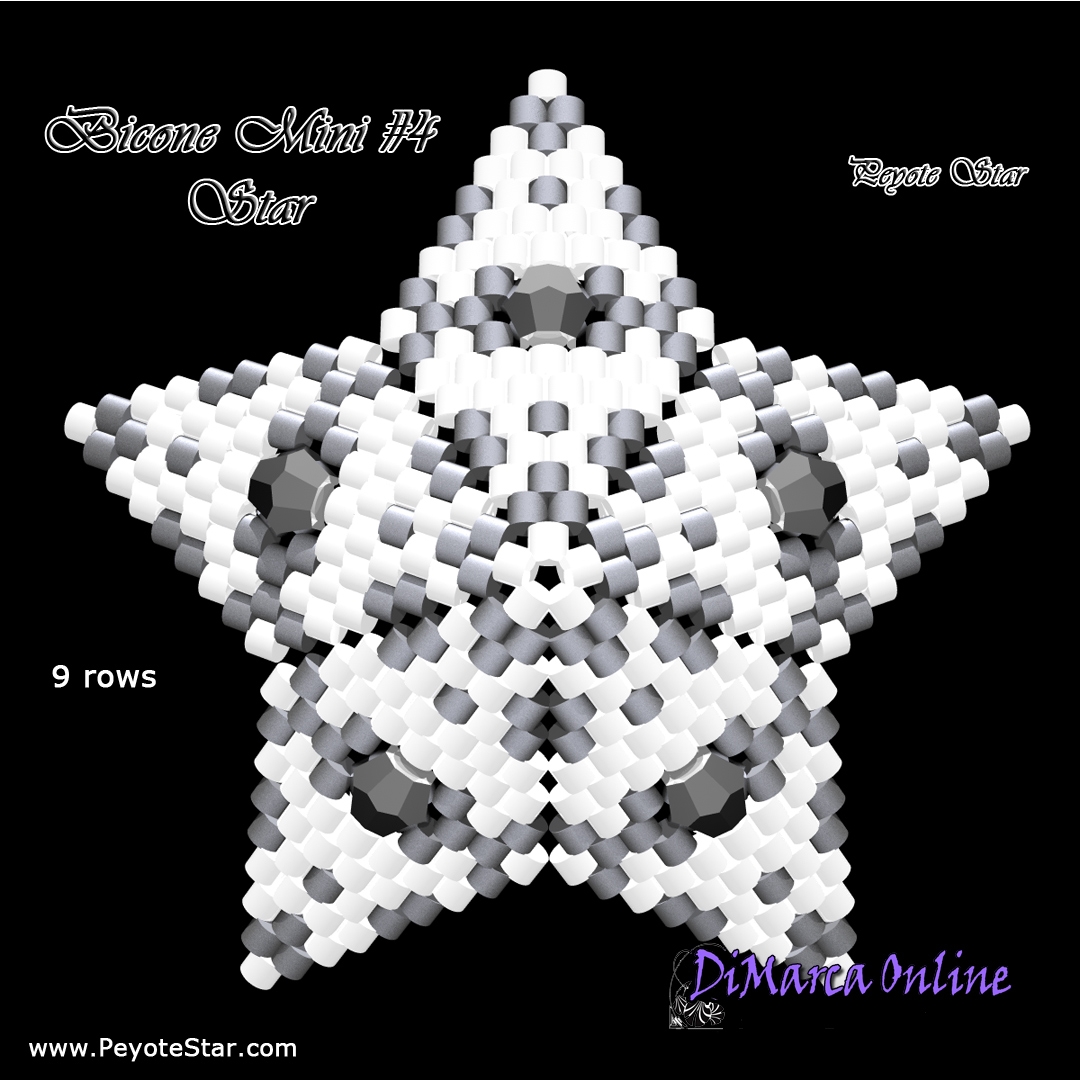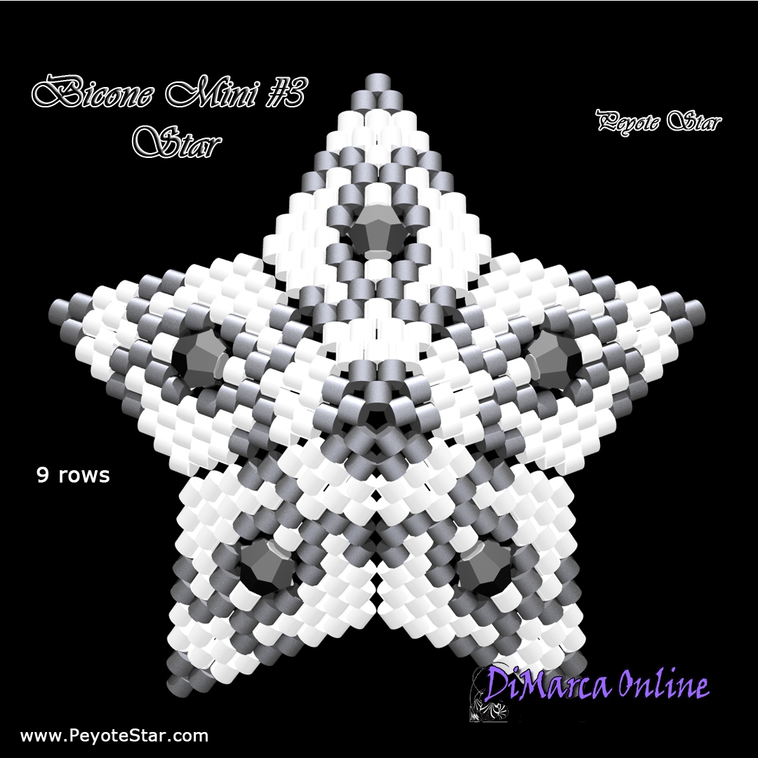 Included are also the step by step instructions with clear 3D images of how to create a 3D Star in peyote with warped squares ("Little 3D Peyote Star") and how to insert bicones.