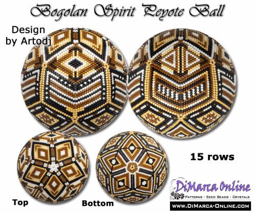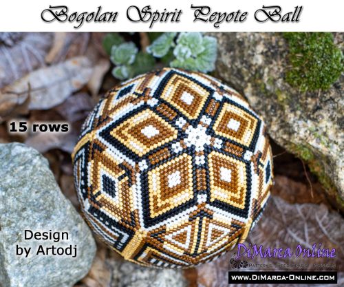 This beading pattern provides colour diagrams and word charts to create the BOGOLAN SPIRIT 3D Peyote Ball.