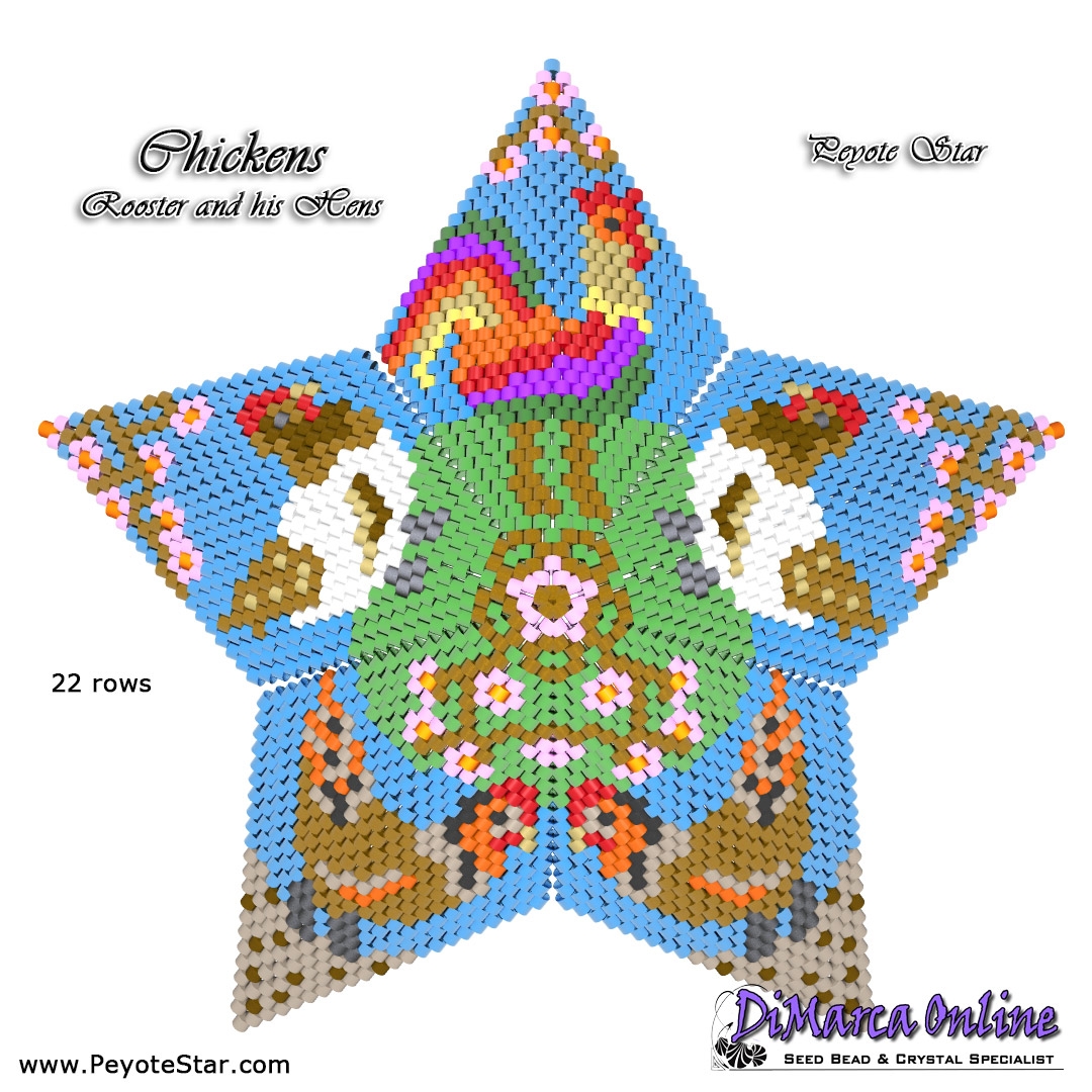 TUTORIAL CHICKENS - THE ROOSTER AND HIS HENS - 3D PEYOTE STAR