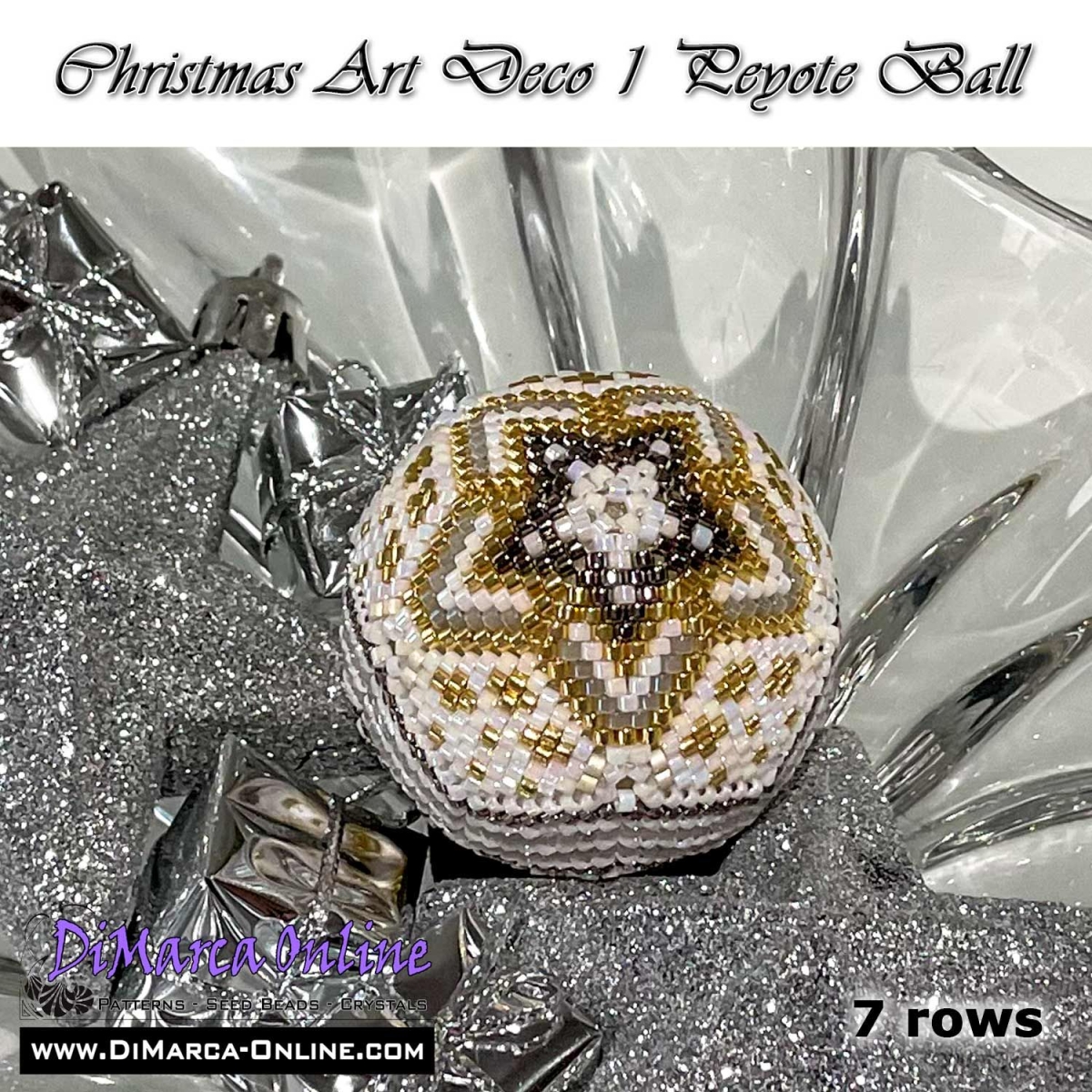 This beading pattern provides colour diagrams and word charts to create the CHRISTMAS ART DECO 1 - 3D Peyote Ball.