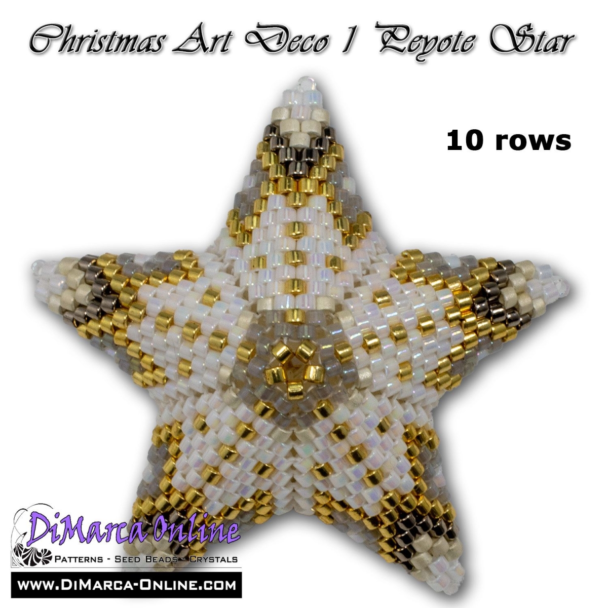 This beading pattern provides colour diagrams and word charts to create the CHRISTMAS ART DECO 1 - 3D Peyote Star.