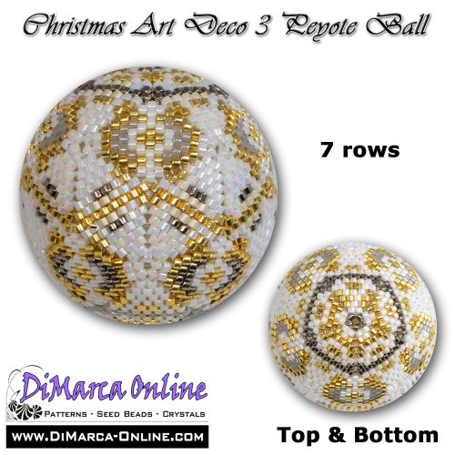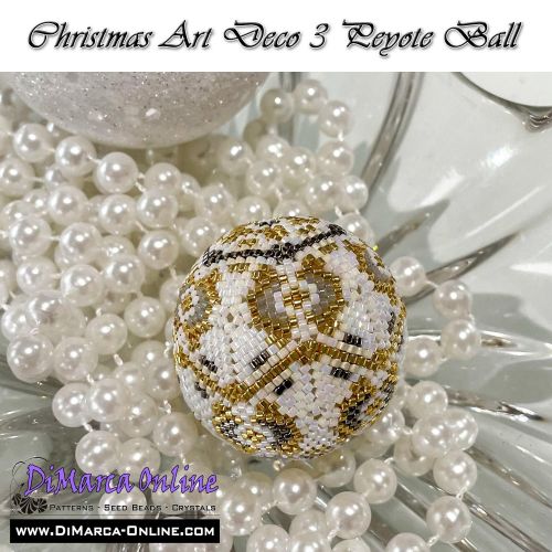 This beading pattern provides colour diagrams and word charts to create the CHRISTMAS ART DECO 3 - 3D Peyote Ball.