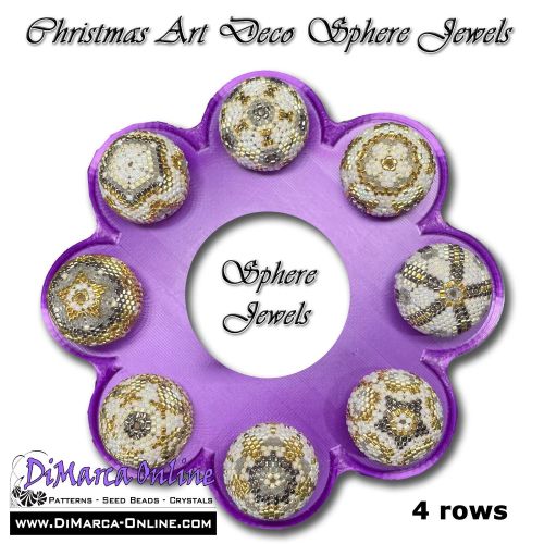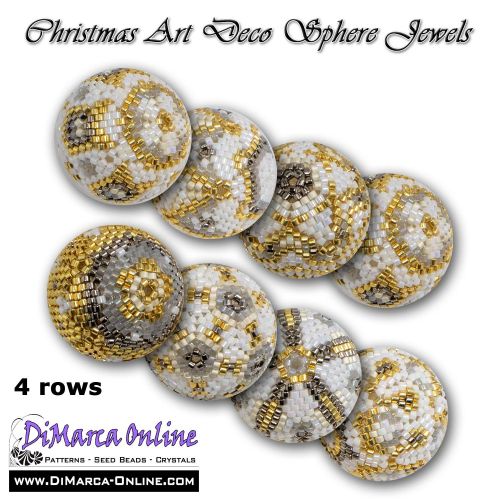 This beading pattern provides colour diagrams and word charts to create 8 CHRISTMAS ART DECO SPHERE JEWELS (8 different designs) - 3D Peyote Balls.