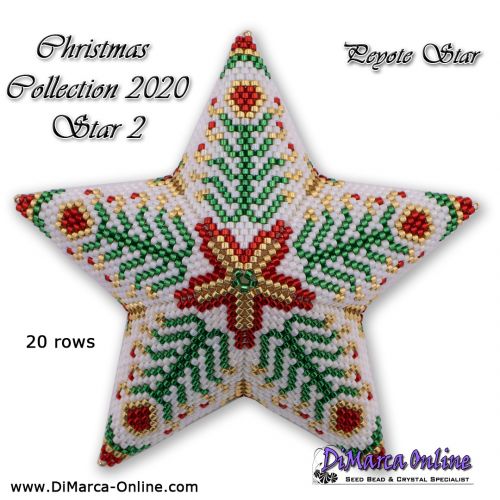 This beading pattern provides a colour diagram and word chart to create the CHRISTMAS COLLECTION 2020 STAR 2 - 3D Peyote Star.