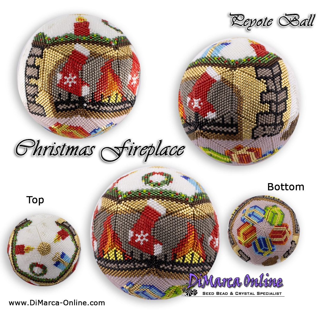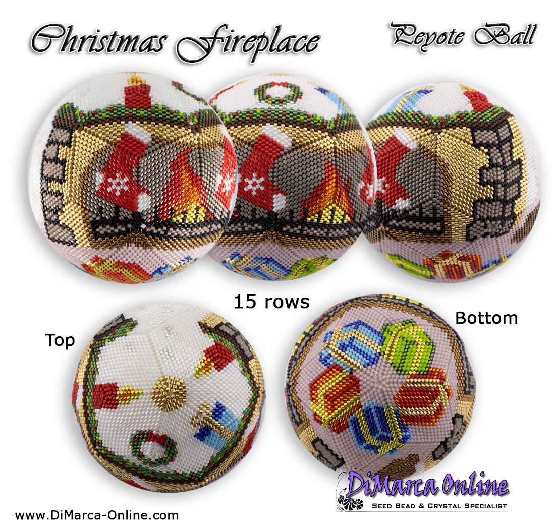 This beading pattern provides colour diagrams and word charts to create the CHRISTMAS FIREPLACE 3D Peyote Ball.