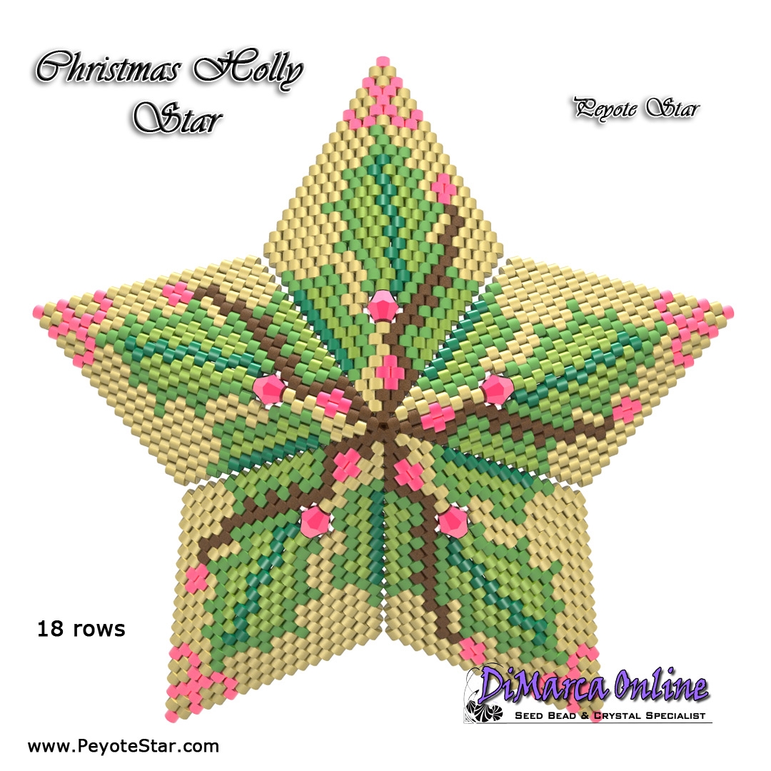 Tutorial 18 rows - Christmas Holly 3D Peyote Star + Basic Tutorial (download link per e-mail)