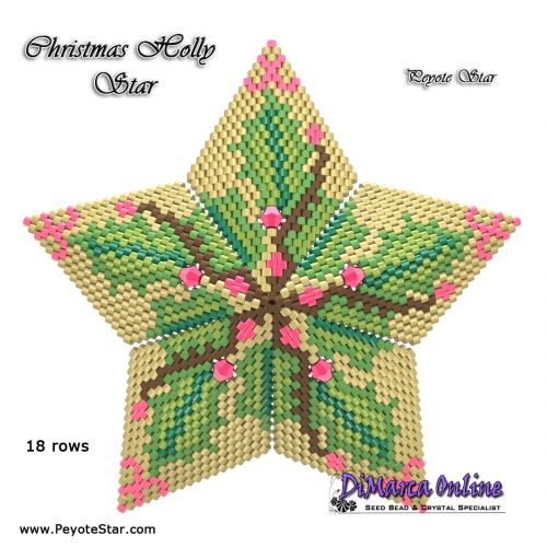 This beading pattern provides a colour diagram and word chart to create the CHRISTMAS HOLLY 3D Peyote Star.