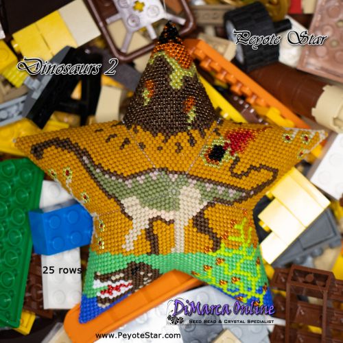 This beading pattern provides a colour diagram and word chart to create the DINOSAURS 2 Peyote Star.
