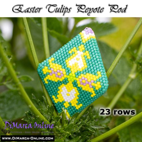 This beading pattern provides a colour diagram and word chart to create the EASTER TULIPS 3D Peyote Pod.