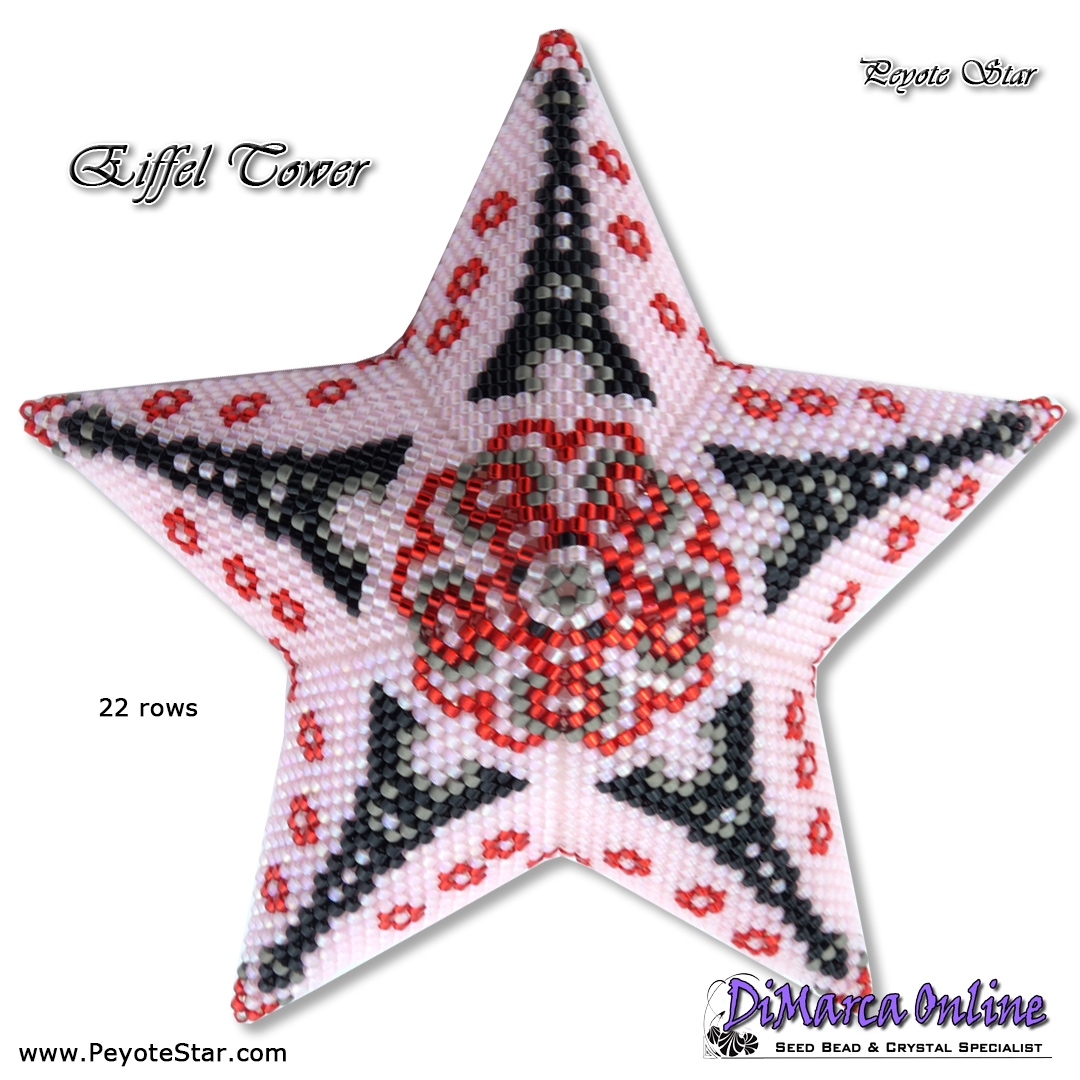 This beading pattern provides a colour diagram and word chart to create the EIFFEL TOWER 3D Peyote Star.