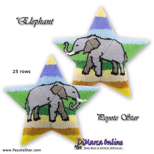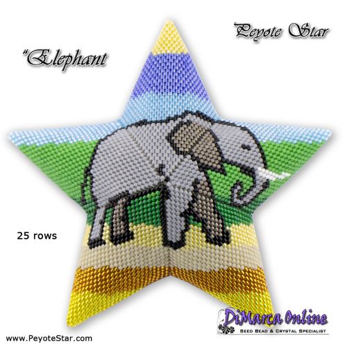 This beading pattern provides a colour diagram and word chart to create the ELEPHANT 3D Peyote Star.
