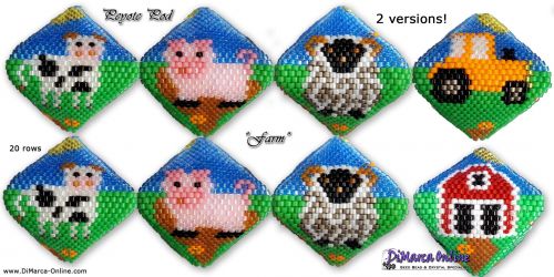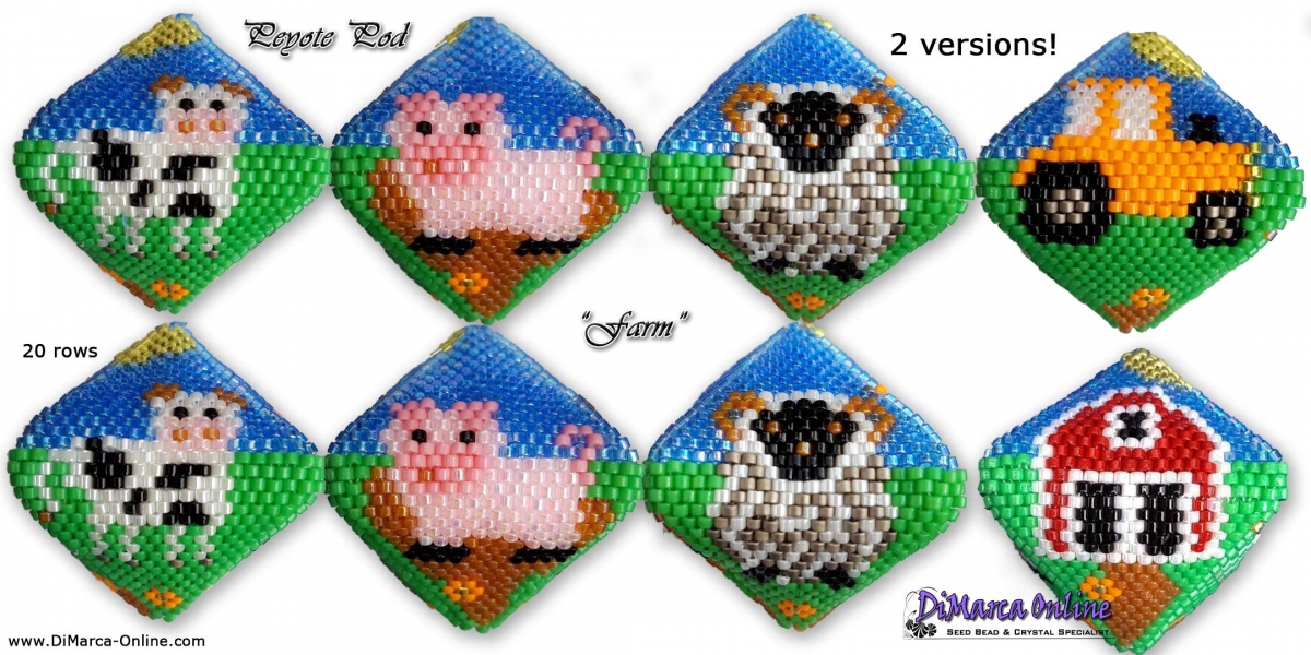 This beading pattern provides a colour diagram and word chart to create the FARM 3D Peyote Pod.