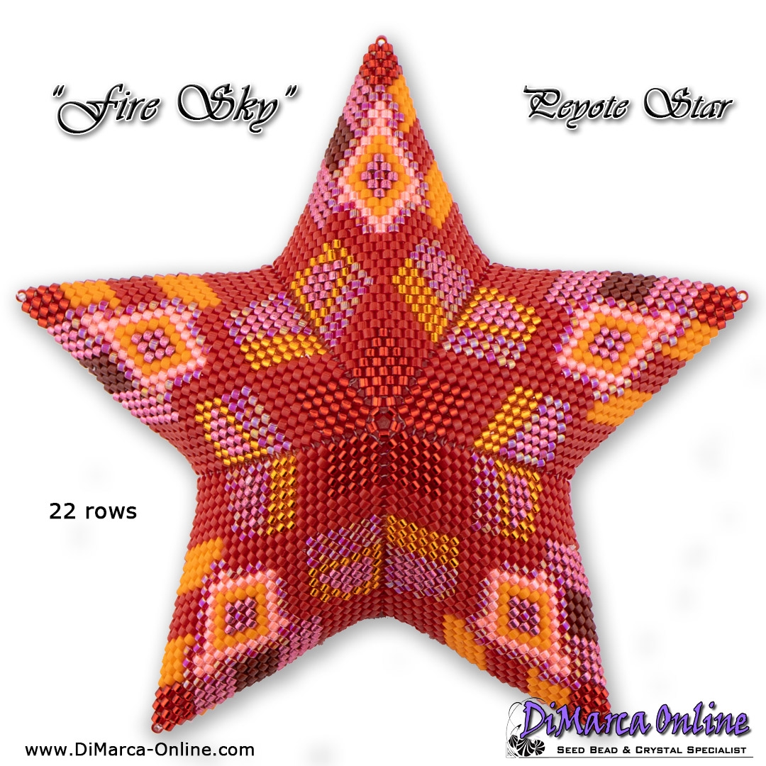 This beading pattern provides a colour diagram and word chart to create the FIRE SKY Peyote Star.