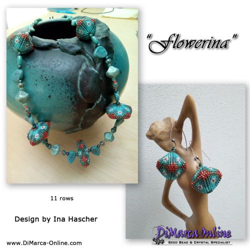 This beading pattern provides a colour diagram and word chart to create the FLOWERINA 3D Peyote Pod.