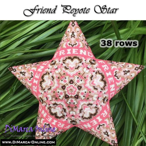This beading pattern provides a colour diagram and word chart to create the FRIEND Peyote Star.