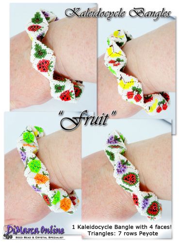 This beading pattern provides colour diagrams and word charts to create the FRUIT KALEIDOCYCLE BANGLE.