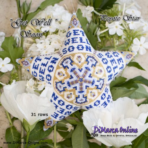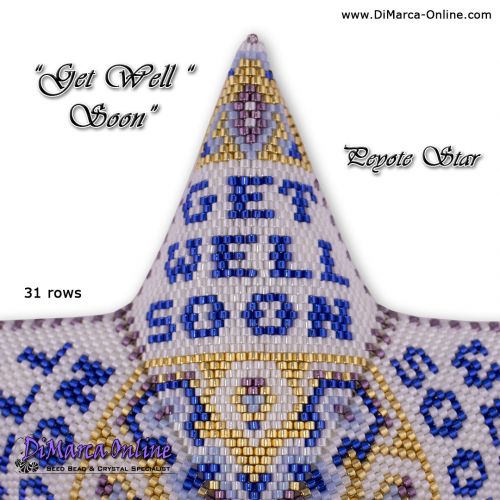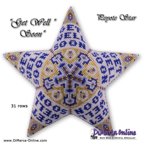 This beading pattern provides a colour diagram and word chart to create the GET WELL SOON Peyote Star.