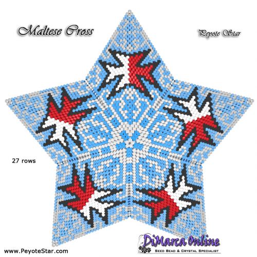 This beading pattern provides a colour diagram and word chart to create the MALTESE CROSS Peyote Star.