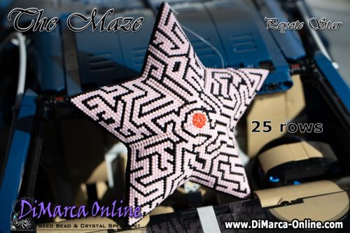 This beading pattern provides a colour diagram and word chart to create the MAZE 3D Peyote Star.