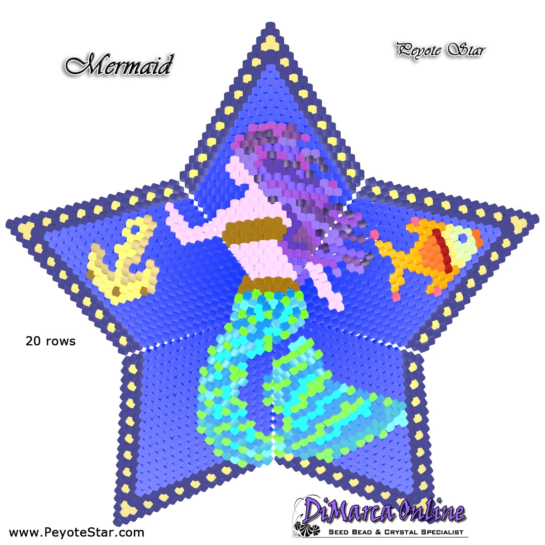 This beading pattern provides a colour diagram and word chart to create the MERMAID 3D Peyote Star.