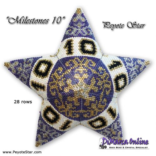 This beading pattern provides a colour diagram and word chart to create the MILESTONES 10 - Peyote Star.
