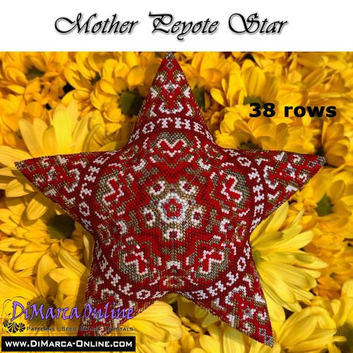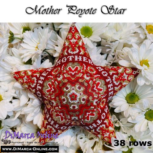 This beading pattern provides a colour diagram and word chart to create the MOTHER Peyote Star.