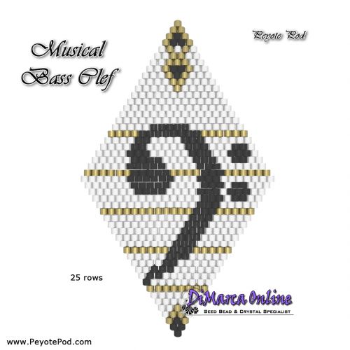 This beading pattern provides a colour diagram and word chart to create the MUSICAL BASS CLEF 3D Peyote Pod.