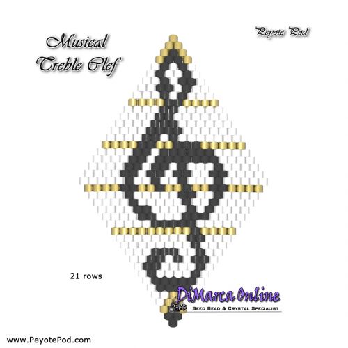 This beading pattern provides a colour diagram and word chart to create the MUSICAL TREBLE CLEF 3D Peyote Pod.