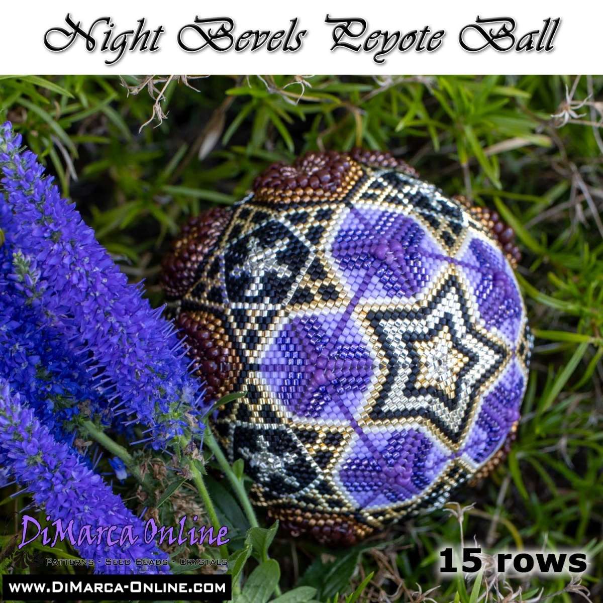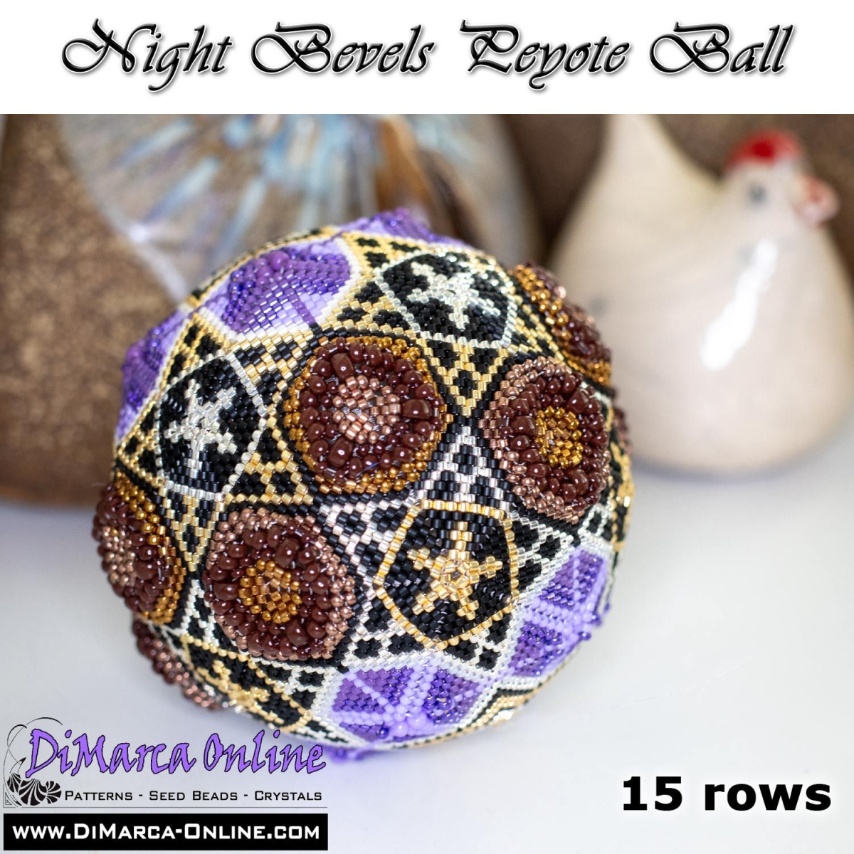 This beading pattern provides colour diagrams and word charts to create the NIGHT BEVELS 3D Peyote Ball.
