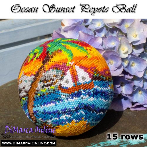 This beading pattern provides colour diagrams and word charts to create the OCEAN SUNSET - 3D Peyote Ball.