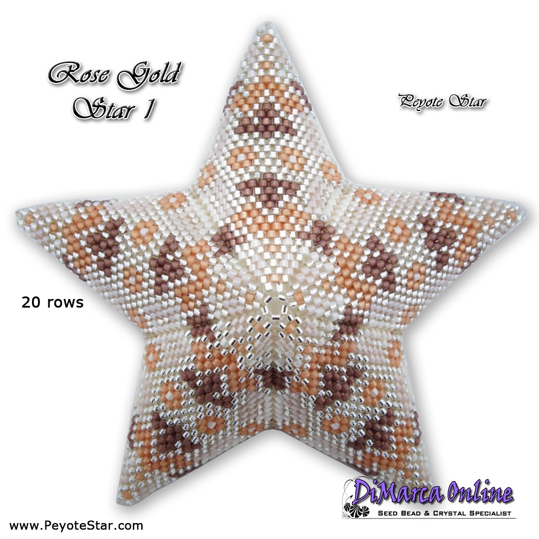 This beading pattern provides a colour diagram and word chart to create the ROSE GOLD 1 Peyote Star.