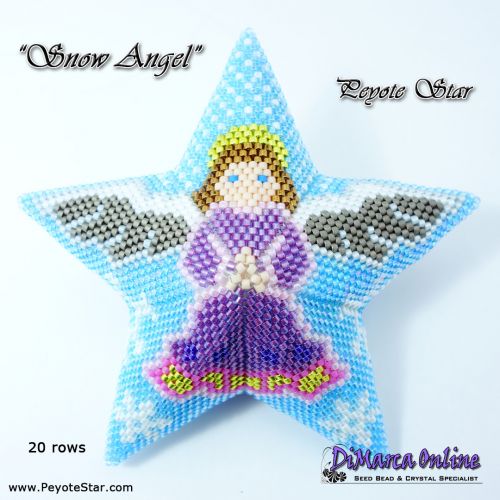 This beading pattern provides a colour diagram and word chart to create the SNOW ANGEL 3D Peyote Star.