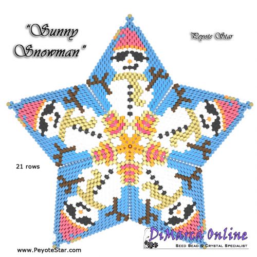 This beading pattern provides a colour diagram and word chart to create the SUNNY SNOWMAN Peyote Star.