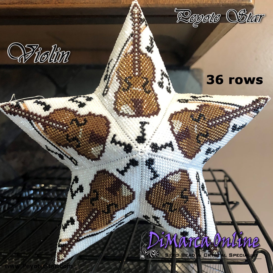 This beading pattern provides a colour diagram and word chart to create the VIOLIN 3D Peyote Star.
